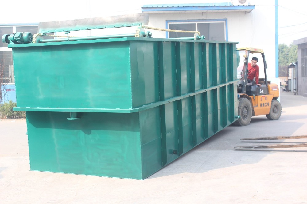 洗滌污水由收集管網(wǎng)收集,自流進(jìn)入調(diào)節(jié)池,由調(diào)節(jié)池調(diào)節(jié)水量和均化水質(zhì)后。再由水泵提升進(jìn)入高效溶氣氣浮機(jī),在該設(shè)備內(nèi),在微小氣泡黏附下,主要去除懸浮有機(jī)物,處理完后再進(jìn)中間水池,中間水池中污水由提升泵提升進(jìn)入生化處理單元(地埋式一體化設(shè)備),污水在該設(shè)備中經(jīng)過水解酸化、生物接觸氧化、沉淀等處理過程,降低水中各項(xiàng)有機(jī)物指標(biāo),使水質(zhì)得到深度的凈化;上清液推流至消毒池,經(jīng)次氯酸鈉消毒后進(jìn)入清水池,出水達(dá)標(biāo)排放。一體化設(shè)備中沉淀池產(chǎn)生的沉淀污泥通過氣提方式輸送至一體化設(shè)備中的濃縮污泥池內(nèi),污泥在濃縮污泥池中濃縮沉降并硝化,上清液回流至厭氧池與原廢水一并重新處理。濃縮污泥定期(半年左右一次)由糞車抽吸外運(yùn)。氣浮池浮渣排入污泥儲存池,定期外運(yùn)處理。